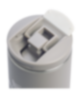 Muggen är 100 % läckagesäker och har en flip-top-lösning som gör den enkel att dricka ur. Locket är utrustat med silikon vid öppningsfliken, vilket gör att det kan öppnas och stängas tyst. Även botten av muggen har en silikonbas som förhindrar att den glider och gör att den kan ställas ner ljudlöst.