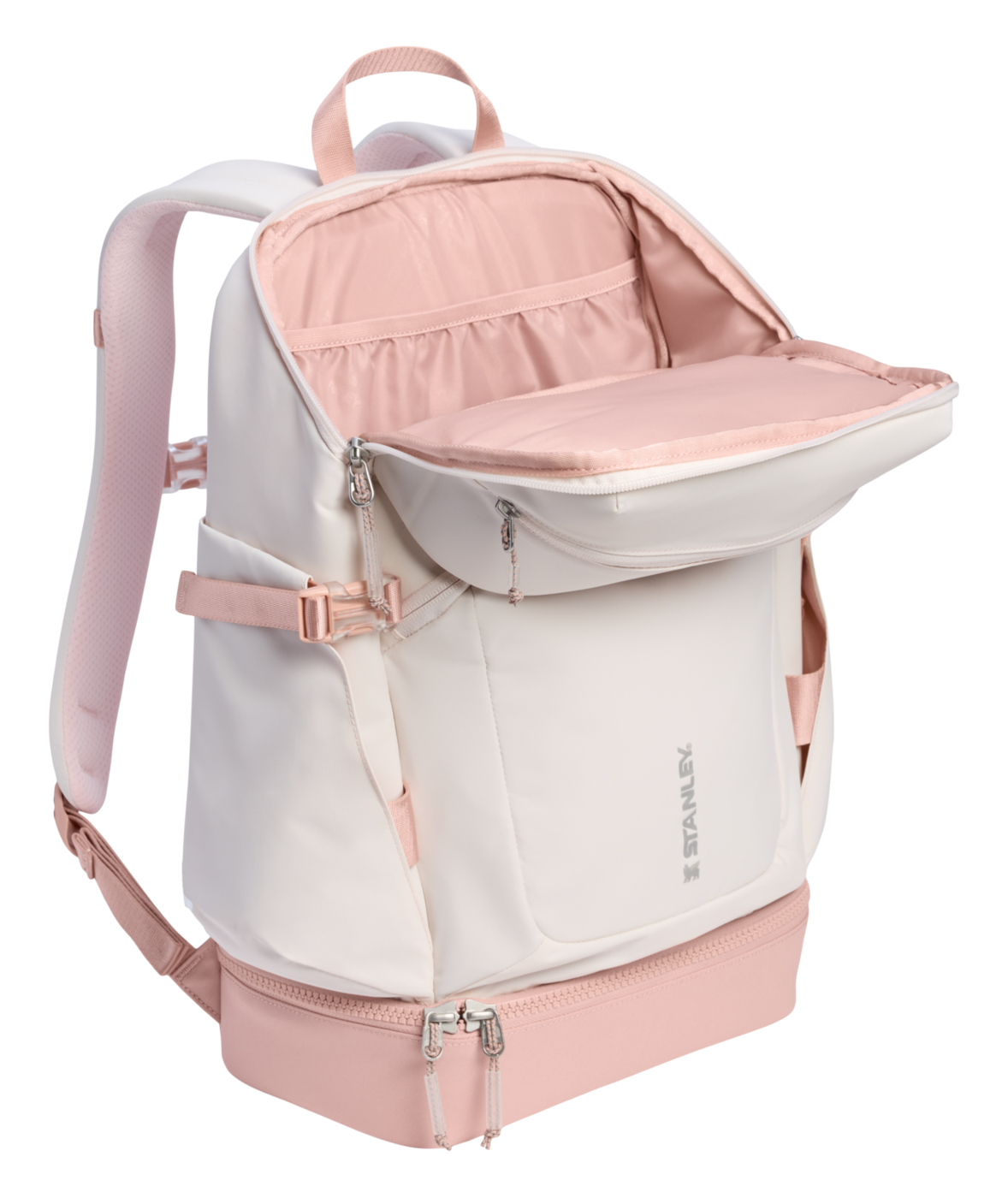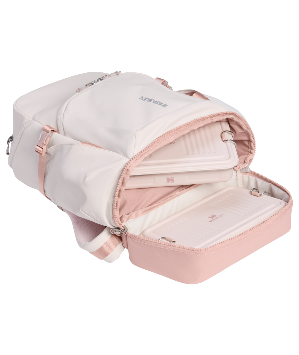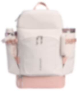 Invändigt finns ett rymligt huvudfack med plats för laptop (upp till 16") samt extra kläder eller jacka. Stapelbara matlådor förvaras säkert i en smart, hopfällbar ficka. Det expanderbara bottenfacket ger extra utrymme för mat, skor eller träningskläder.