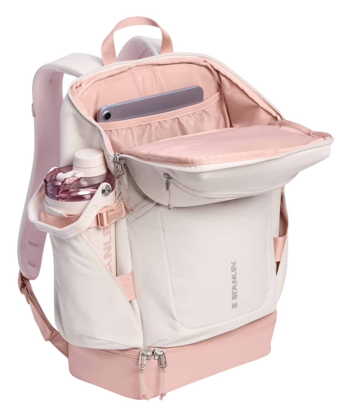 Vitalize™ Macro Method Backpack är gjord för att rymma allt du behöver. Placera din 1,18 L Quencher® ProTour eller Vitalize™ Shaker i den smarta hållaren som håller flaskan säkert på plats. Framfickan med dragkedja ger snabb åtkomst till nycklar, plånbok och mobil.
