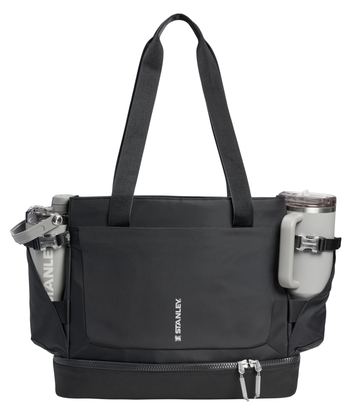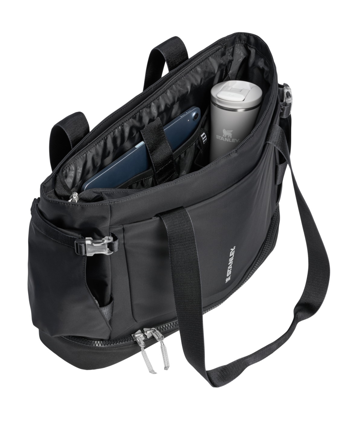 Vitalize™ Macro Method Tote rymmer allt du behöver. På utsidan finns ett smart band och en ficka som håller din termos (1,18 L Quencher® ProTour eller Vitalize™ Shaker) nära till hands. Den främre fickan med dragkedja rymmer mobil, nycklar och plånbok.